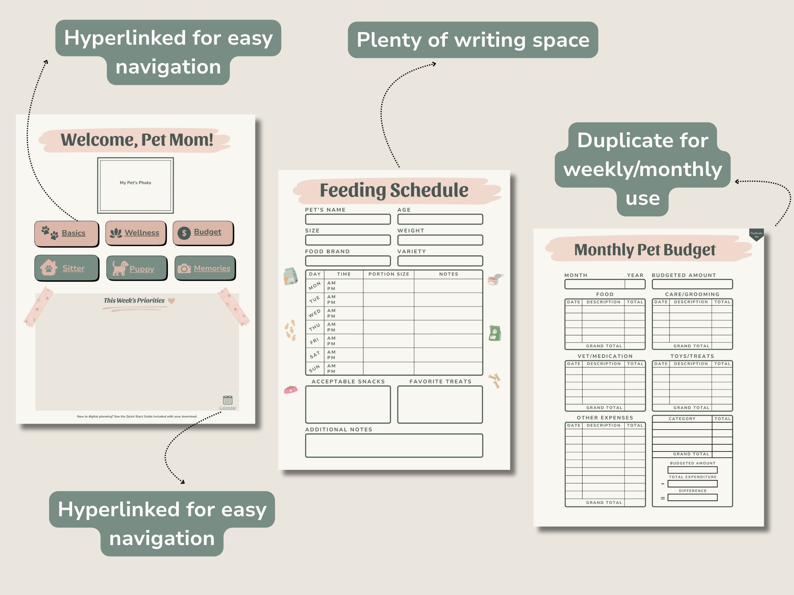 Fully Hyperlinked Pet Planner PDF Printable