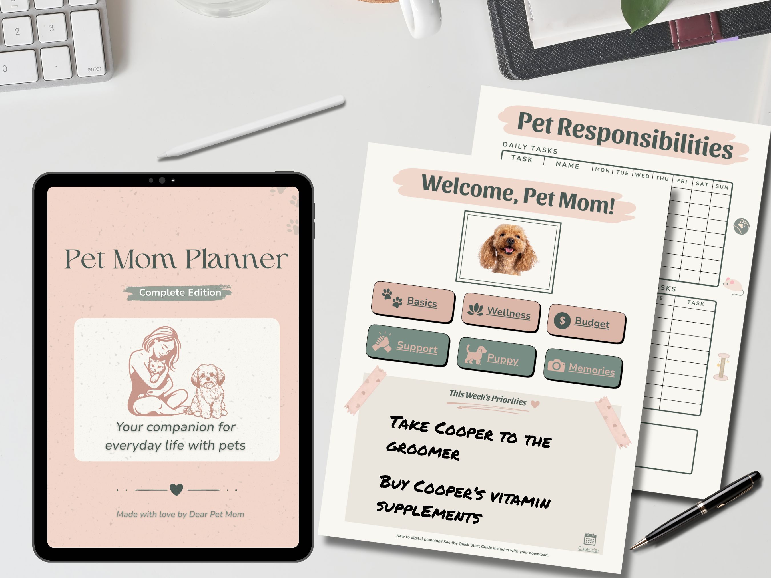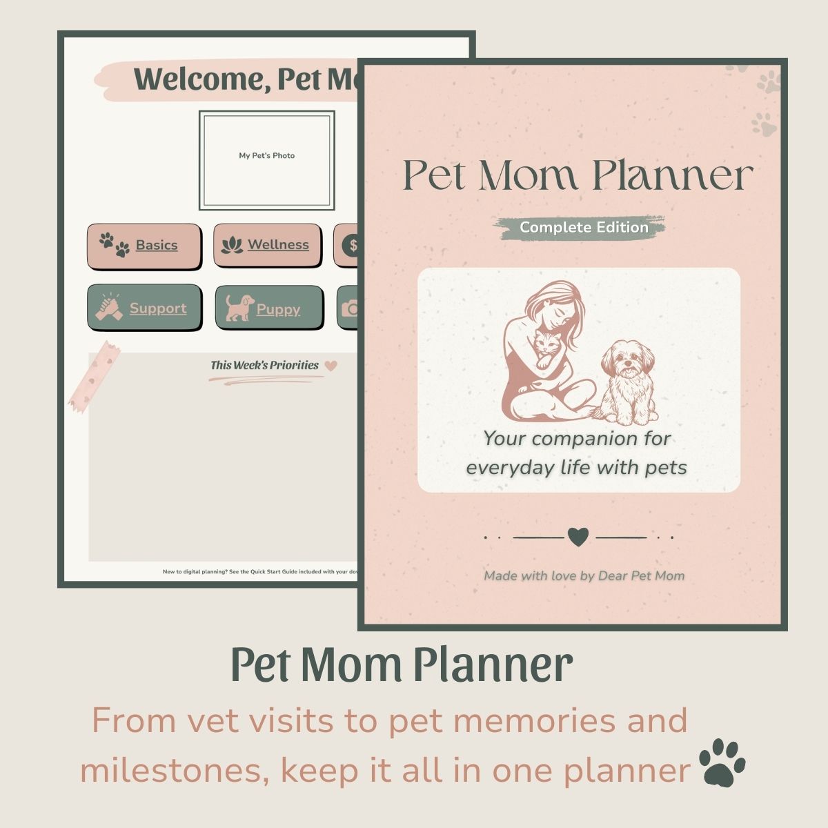 Keep all your pet’s records, routines, and expenses in one place with the Pet Mom Planner (Complete Edition).